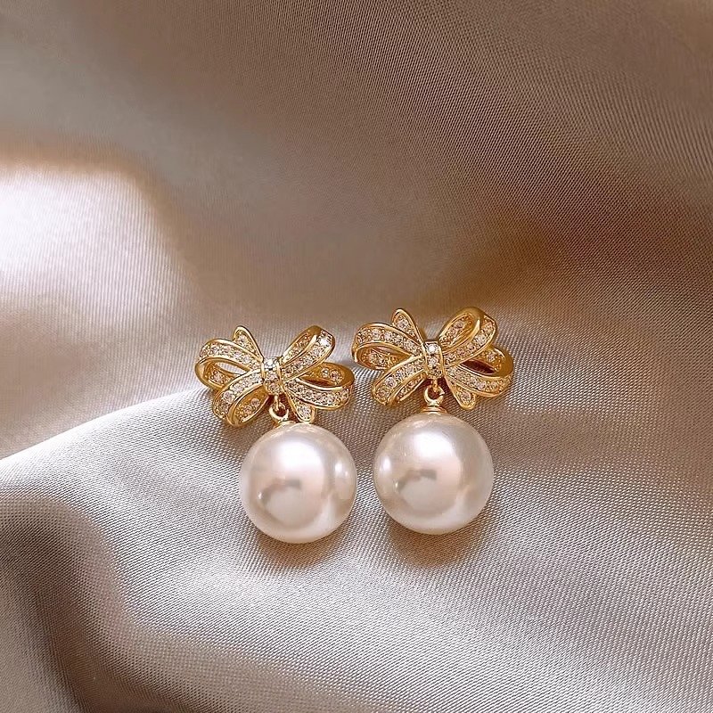 Color: Bow pearl stud earrings earrings-12mm